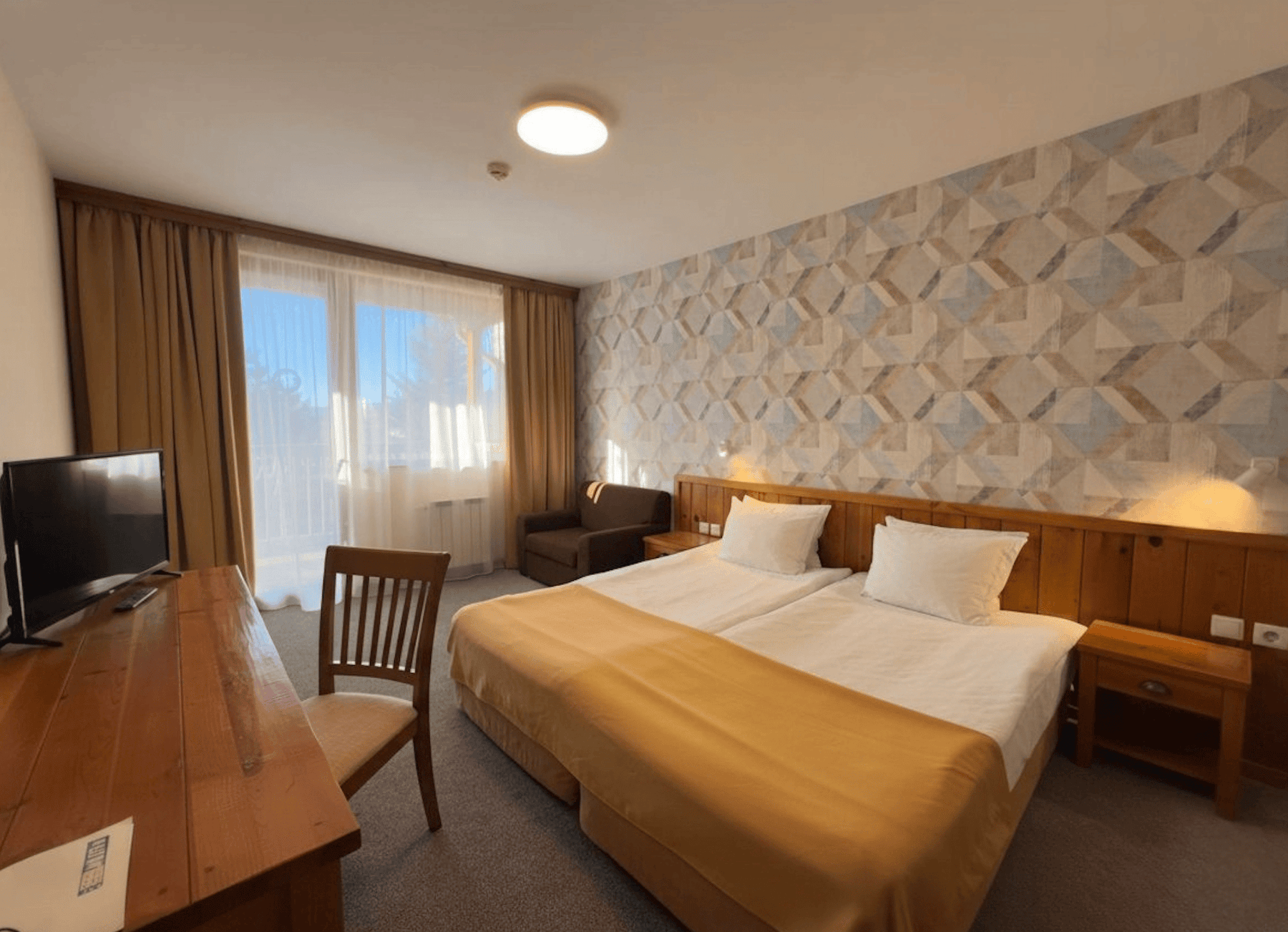 majutus kahekohalises toas Bansko hotellis 6 ööd koos hommikusöögiga buffeelauas.